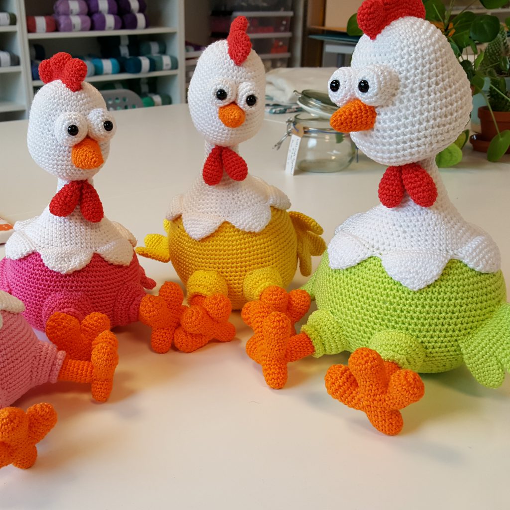 Ik heb zowel moeder kip, de eieren als de kuikens gehaakt met Yarn and colors charming. Lijkt heel veel op scheepjes die jookzcreaties gebruikt in haar patroon. Alleen zijn de tinten iets anders.
